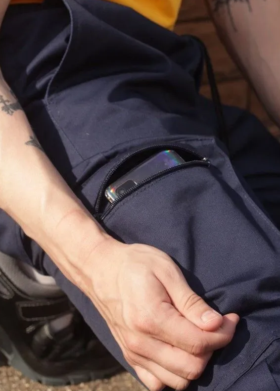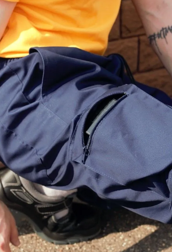 Внизу брюки имеют резинку для регулировки уровня объёма ширины, вверху брюки так же регулируются с помощью шнурка. Брюки оснащены 6 карманами для хранения необходимых вещей, таких как ключи или мобильный телефон. Два кармана углубленные и застегиваются на молнию. Карманы имеют углубление как сверху так и снизу, что предотвращает выпадение вещей даже в открытом состояние кармана.